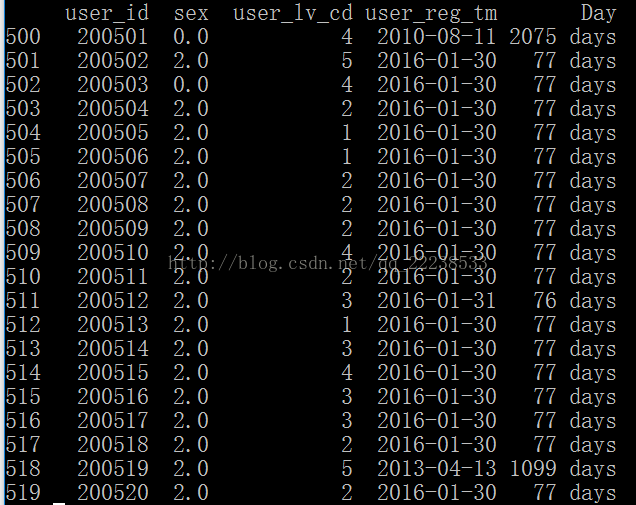 如果我们希望对用户账号注册时间转为具体的天数,我们可以用如下代码。