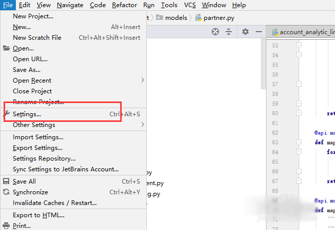 接着我们点击左上角的File菜单,然后选择Setting选项