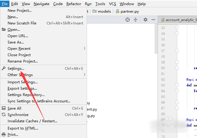 首先我们点击File菜单,然后选择Setting,如下图所示