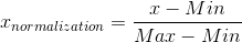 LaTex:{x}_{normalization}=\frac{x-Min}{Max-Min}