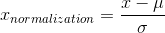 LaTex:{x}_{normalization}=\frac{x-\mu }{\sigma }