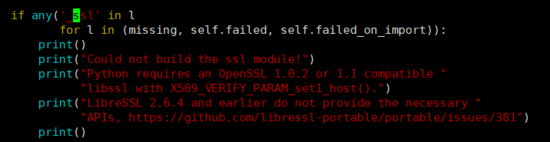 在Python3.7之后的版本,依赖的openssl,必须要是1.1或者1.0.2之后的版本,或者安装了2.6.4之后的libressl。