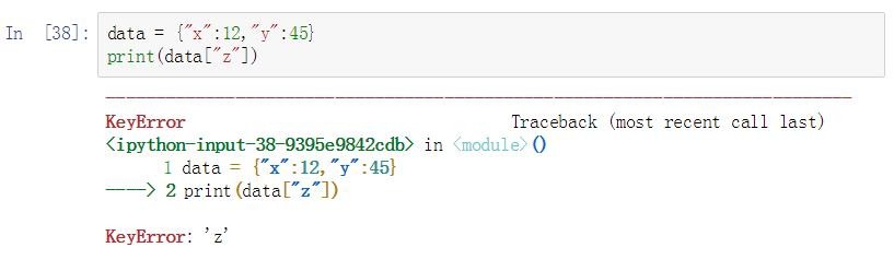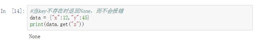 当key不存在时返回None,而不会报错。如果直接通过键来获取相应的值,当键-值对不存在时,会出现KeyError错误。代码示例如下: