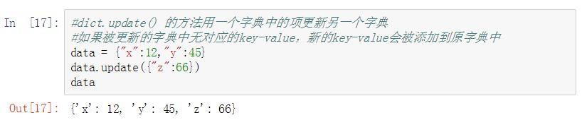 1、/24、update() 用一个字典更新另一个字典