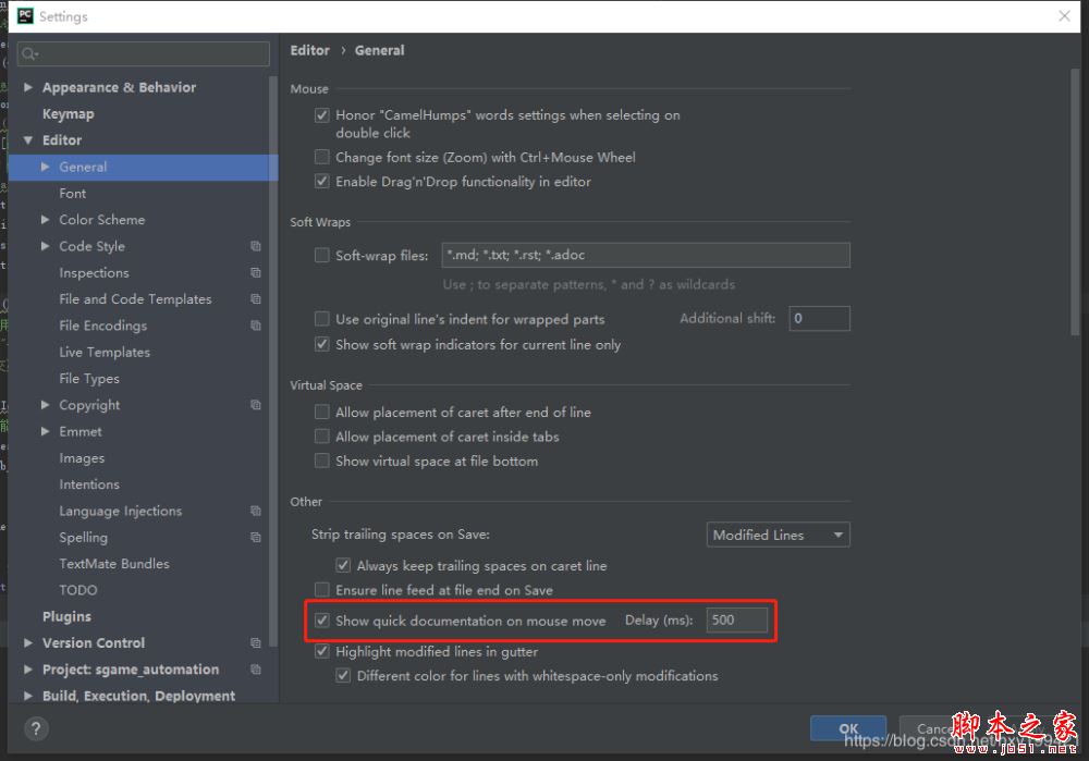 1、配置pycharm 依次点击"File"-->"Settings",进入"Editor"-->"General",勾选"Other"下的“Show quick documentation on mouse move”