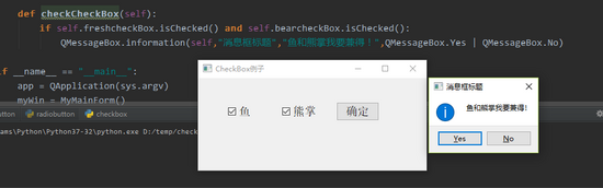 self.freshcheckBox.isChecked() and self.bearcheckBox.isChecked() --> 同样适用isChecked()函数判断。