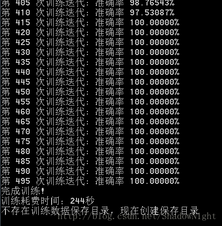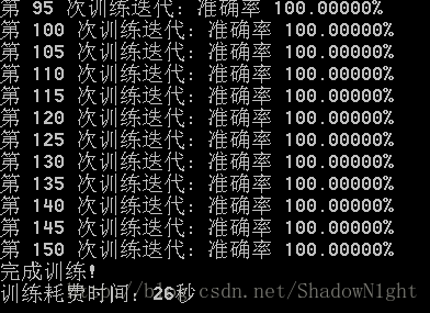 # 每完成五次迭代,判断准确度是否已达到100%,达到则退出迭代循环