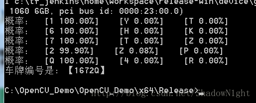 然后进行省份简称识别,在命令行输入执行如下命令: