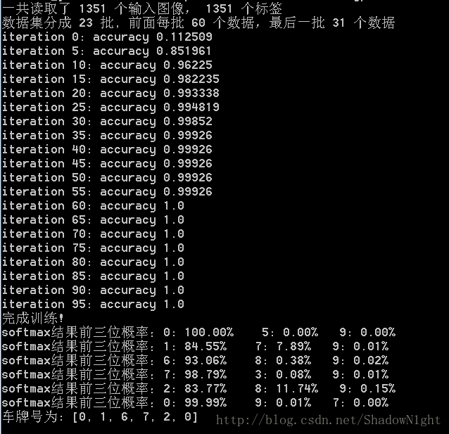 可以看出,分类结果为016720,是正确的,而softmax计算结果可信度也是可以接受的。