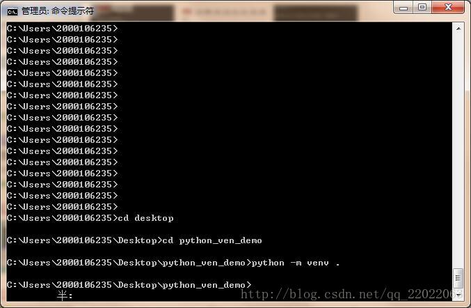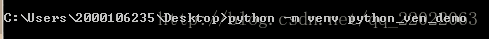 直接输入 python -m venv python_ven_demo (虚拟环境文件夹名,直接在桌面建立了文件夹,同时生成了虚拟环境)