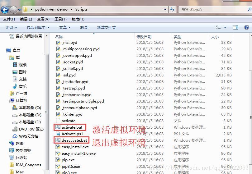 激活文件在Script文件夹下,如图所示。激活:activate.bat,退出:deactivate.bat
