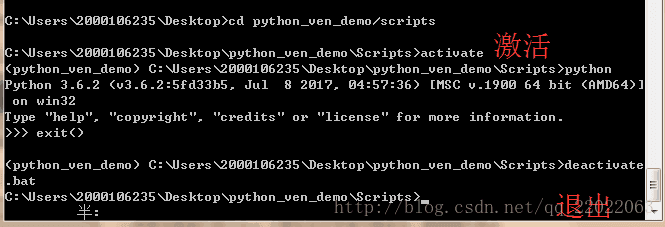 退出方式:输入deactivate.bat 或 deactivate