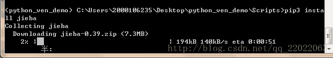 激活后,pip3 install jieba