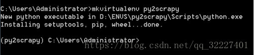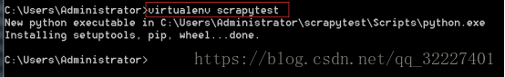 5、下载完成后,就可以使用 【virtualenv 虚拟环境名称】 这个命令创建虚拟环境,会在当前所在目录进行创建