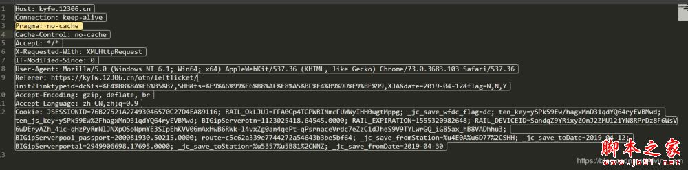 Host: kyfw.12306.cn Connection: keep-alive Pragma: no-cache Cache-Control: no-cache Accept: */* X-Requested-With: XMLHttpRequest If-Modified-Since: 0 User-Agent: Mozilla/5.0 (Windows NT 6.1; Win64; x64) AppleWebKit/537.36 (KHTML, like Gecko) Chrome/73.0.3683.103 Safari/537.36 Referer: https://kyfw.12306.cn/otn/leftTicket/init?linktypeid=dc&fs=%E4%B8%8A%E6%B5%B7,SHH&ts=%E9%A6%99%E6%B8%AF%E8%A5%BF%E4%B9%9D%E9%BE%99,XJA&date=2019-04-12&flag=N,N,Y Accept-Encoding: gzip, deflate, br Accept-Language: zh-CN,zh;q=0.9 Cookie: JSESSIONID=76B27521A27493046570C27D4EA89116; RAIL_OkLJUJ=FFA0Gp4TGPWRINmcFUWWyIHH0ugtMppg; _jc_save_wfdc_flag=dc; ten_key=ySPk59Ew/hagxMnD31qdYQ64ryEVBMwd; ten_js_key=ySPk59Ew%2FhagxMnD31qdYQ64ryEVBMwd; BIGipServerotn=1123025418.64545.0000; RAIL_EXPIRATION=1555320982648; RAIL_DEVICEID=SandqZ9YRixyZOnJ2ZMUl2iYN8RPrDz8F6WsV6wDEryAZh_41c-qHzPyRmNlJNXpOSoNpmYE3SIpEhKVV06mAxHwB6RWk-l4vxZg0an4qePt-qPsrnaceVrdc7eZzC1dJheS9V9TYLwrGQ_iG85ax_hB8VADhhu3; BIGipServerpool_passport=200081930.50215.0000; route=c5c62a339e7744272a54643b3be5bf64; _jc_save_fromStation=%u4E0A%u6D77%2CSHH; _jc_save_toDate=2019-04-12; BIGipServerportal=2949906698.17695.0000; _jc_save_toStation=%u5357%u5B81%2CNNZ; _jc_save_fromDate=2019-04-30