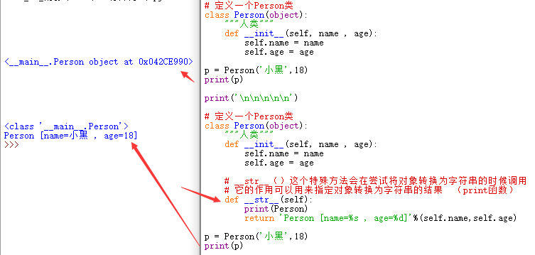 原因: __str__()这个特殊方法将对象转换为字符串的结果
