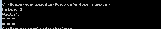 用循环方式,当num_height小于等于你的行数。就是小于或者等于你输入的数字。就打印出来#号键,并且加空格。循环num_height +=1的意思意思就是。我一开始定义了unm_height是1,每次都加一循环。但是条件是小于我输入的数字。例如,我输入的数字是个3,那么每次循环加1,第一次循环是1,1小于3,打印出第一个#号,再一次循环,1+1=2,2小于3,打印出第二个#,第三个循环2+1=3,3等于3 打印出第三个#。print ("#",end=" "),这个意思是打印#号键,并且以一个空格分隔开。连着print()就是换行的意思,(结果会看到什么是换行)当一个条件执行完毕,再执行下一个条件,就是说先执行我第一定义的行数。再执行列数。行数执行完毕,同理,列也是一样的意思。我先定义好你即将输入的列数,你输入多少就是多少。然后再用列数每次循环加一。假定也是3,那就是每次循环加1,直到等于3,为止。循环结束。结果就是: