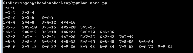 九九乘法表就是套用上面的循环,如图: