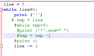 根据代码的描述,先定义Line的值,我定义为5,循环line,当line大于0时,我加了一个注释的意思就是打印出来五列*。就是如图的结果: