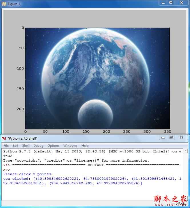 Sometimes we have need to interact with an application,for example by marking points in an image,or you need to annotation some training data.PyLab comes with a simple function ginput() the let's you do just that .Here's a short example.