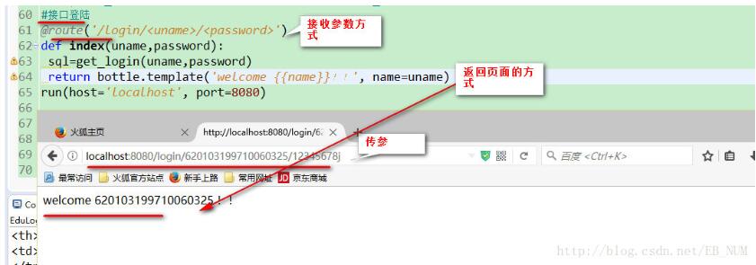 2.写一个bottle服务,也就是所谓的一个接口,供给浏览器调用的接口