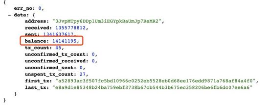 注意余额的单位每个币种都不一样,根据自己钱包余额调整即可,比如上述余额实际需要除以10e7(10的7次方)就可得到余额为0.14141195个BTC。