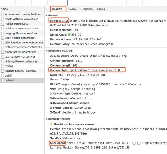 我们发现在balance一样展开有余额信息,那我们只要找到请求头部信息就能获得了