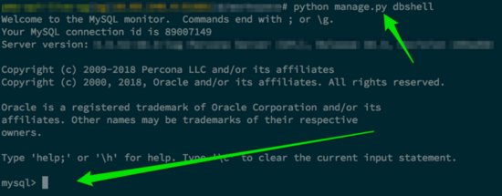 实际工作经历中,免不了有时候需要连接数据库进行问题排查分析的场景,之前一直习惯通过 mysql -uxxx -hxxxx -P1234 ... 这样的方式来启动命令行形式的 MySQL 数据库客户端程序,只是用起来比较麻烦,每次都要拷贝各个配置参数,还要记得不要在命令里显式打印密码。后来想起来在开发 Ruby on Rails 程序的时候,其提供了 rails dbconsole 的命令,可以方便直接启动对应的数据库客户端命令行程序,联想到 Django 理论上也有,所以找到了 python manage.py dbshell 这个命令,使用效果和自己手动敲 mysql 命令行是一样的,省去繁琐的参数设定步骤。