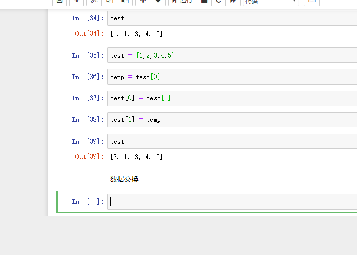 列表中的元素如何交换位置呢?我们创建一个列表test,然后我们定义一个中间变量temp, 通过temp完成数据交换。