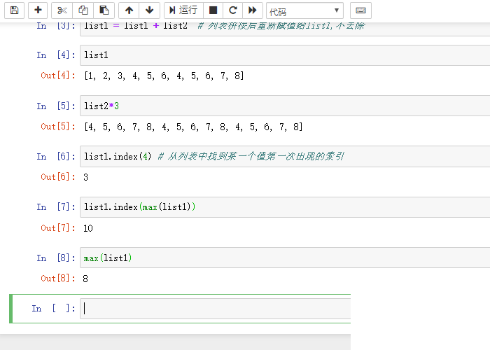 我们可以使用index()方法获取某个元素在列表中的索引位置,如下所示。我们可以指定某一个元素,也可以指定列表中的最大值等等。