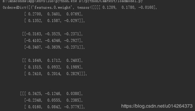 import torch pthfile = r'E:\anaconda\app\envs\luo\Lib\site-packages\torchvision\models\squeezenet1_1.pth' net = torch.load(pthfile) print(net)