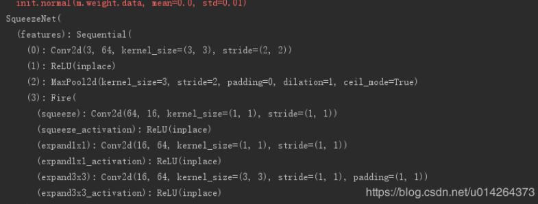 接下来就是运行这个.pth文件。首先要判断是保存的整个网络结构加参数呢,还是只保存了参数,可以测试一下。这是我的模型是squeezenet1_1,你可以测试自己下载的模型