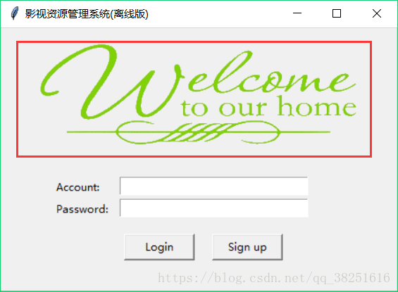 self.canvas = tkinter.Canvas(self.root, height=200, width=500)#创建画布 self.image_file = tkinter.PhotoImage(file='welcome_1.gif')#加载图片文件 self.image = self.canvas.create_image(0,0, anchor='nw', image=self.image_file)#将图片置于画布上 self.canvas.pack(side='top')#放置画布(为上端)