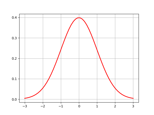 # Python实现正态分布 # 绘制正态分布概率密度函数 u = 0 # 均值μ u01 = -2 sig = math.sqrt(0.2) # 标准差δ sig01 = math.sqrt(1) sig02 = math.sqrt(5) sig_u01 = math.sqrt(0.5) x = np.linspace(u - 3*sig, u + 3*sig, 50) x_01 = np.linspace(u - 6 * sig, u + 6 * sig, 50) x_02 = np.linspace(u - 10 * sig, u + 10 * sig, 50) x_u01 = np.linspace(u - 10 * sig, u + 1 * sig, 50) y_sig = np.exp(-(x - u) ** 2 /(2* sig **2))/(math.sqrt(2*math.pi)*sig) y_sig01 = np.exp(-(x_01 - u) ** 2 /(2* sig01 **2))/(math.sqrt(2*math.pi)*sig01) y_sig02 = np.exp(-(x_02 - u) ** 2 / (2 * sig02 ** 2)) / (math.sqrt(2 * math.pi) * sig02) y_sig_u01 = np.exp(-(x_u01 - u01) ** 2 / (2 * sig_u01 ** 2)) / (math.sqrt(2 * math.pi) * sig_u01) plt.plot(x, y_sig, "r-", linewidth=2) plt.plot(x_01, y_sig01, "g-", linewidth=2) plt.plot(x_02, y_sig02, "b-", linewidth=2) plt.plot(x_u01, y_sig_u01, "m-", linewidth=2) # plt.plot(x, y, 'r-', x, y, 'go', linewidth=2,markersize=8) plt.grid(True) plt.show()