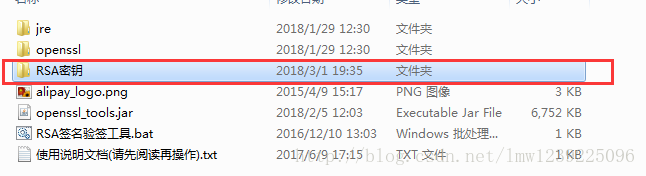 2、把生成的 应用私钥 和 支付宝的公钥 放入keys目录下: