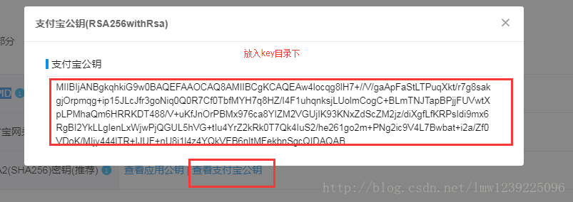 --- 配置支付宝公钥--进入网页-->查看支付宝公钥-->把公钥放到key目录下