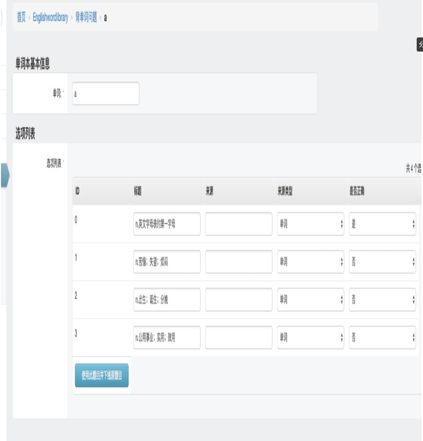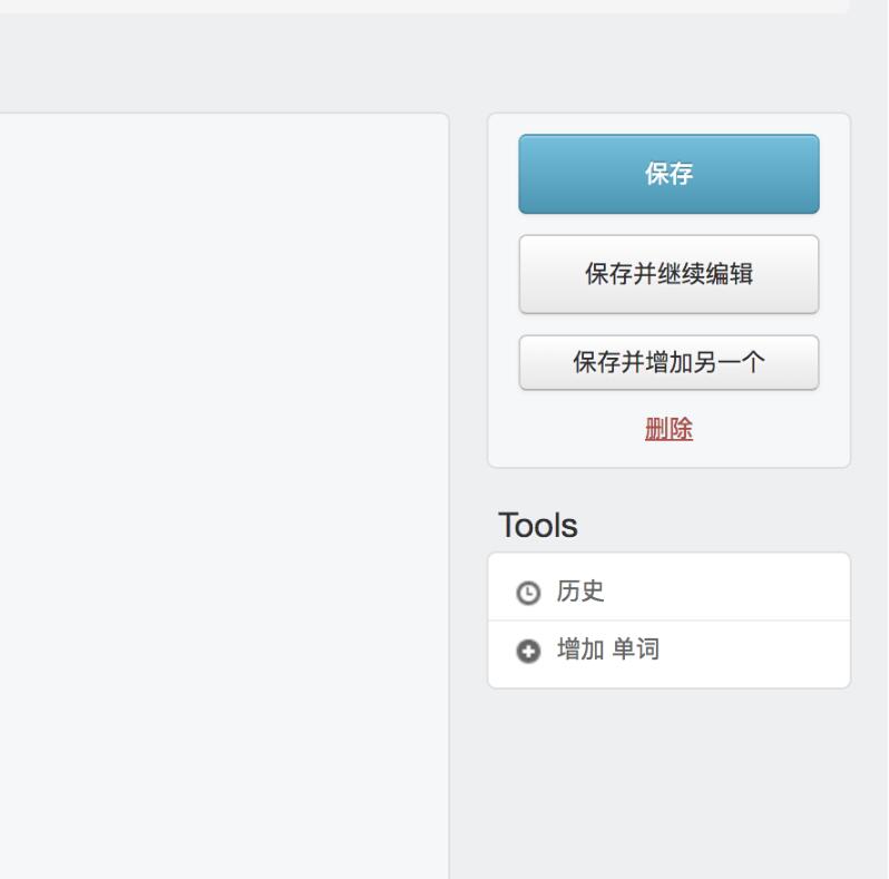 然后我在admin/englishwordlibrary/recitequestion/change_form.html 更改页面样式,删除相应按钮和菜单。最后效果就是: