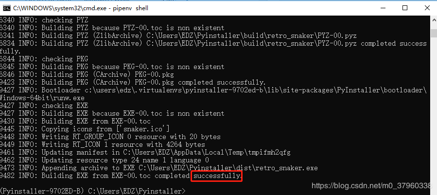 命令:pyinstaller -F -w -i snaker.ico retro_snaker.py