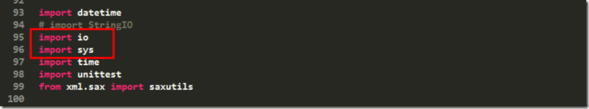在HTMLTestRunner的94行中,是使用的StringIO,但是Python3中,已经没有StringIO了。取而代之的是io.StringIO。所以将此行修改成import io