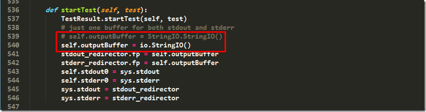 第539行,将self.outputBuffer = StringIO.StringIO()修改成self.outputBuffer = io.StringIO()