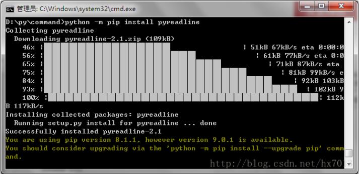 cmd命令行,就会自动安装readline模块