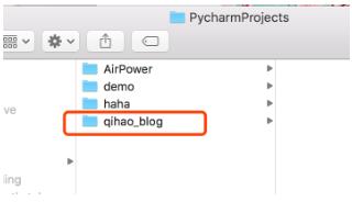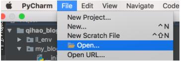 PyCharm中打开刚才新建的qihao_blog文件夹