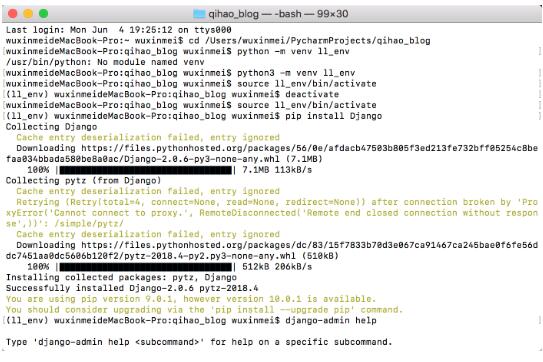 cd进入 qihao_blog 目录后创建一个虚拟环境