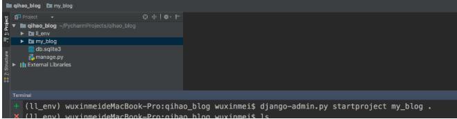 在terminal中输入如下命令。创建一个my_blog项目。