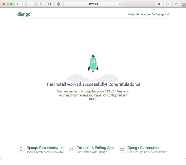 现在打开浏览器,并输入URL:http://localhost:8000/ 或者 http://127.0.0.1:8000/
