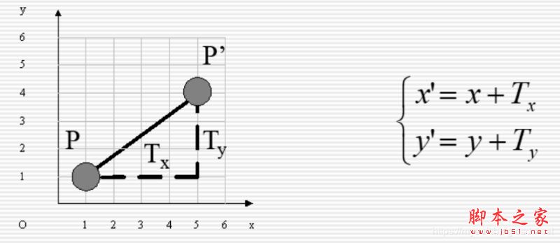 从这里可以看到平移的基本性质,有了这些概念之后,就要进入解释几何,平移的表达,比如往x轴移动100,那么就是x+100,因此平移的公式就是(x1, y1)=(x+a, y+b),如下图所示: