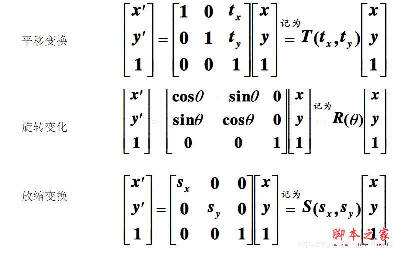 在这里发现是使用三维矩阵来表示,为什么要这样呢?其实是为了把三种变换统一到一种表示方式,升维思想的作用。因此矩阵第三行没有什么作用的,如果一个图像要作平移,只要构造出变换矩阵,再作这个计算,就可以把坐标进行改变了,所以要平移的距离是由tx和ty决定。为了统一,旋转、缩放、平移都可以使用一个公式来表示和计算,这是升到三维数组的好处。同样在三维空间的变换,也是采用四维变换矩阵。下面通例子来演示图像平移的操作: