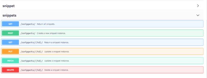 点击打开snippets,可以看到如下,每个方法后面都有你在views.py中添加的注释
