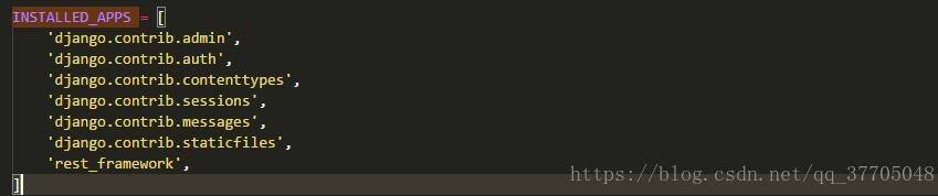 5、添加'rest_framework'到INSTALLED_APPS。设置模块将处于tutorial/settings.py