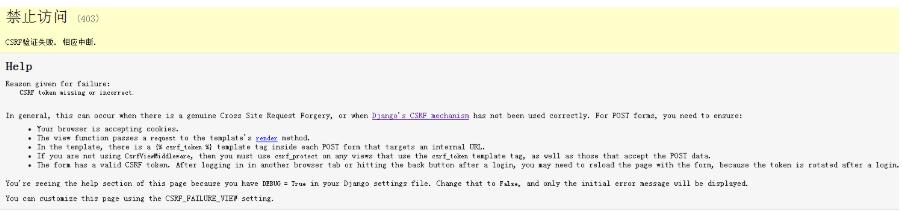 以上这篇关于django 1.10 CSRF验证失败的解决方法就是小编分享给大家的全部内容了,希望能给大家一个参考,也希望大家多多支持脚本之家。